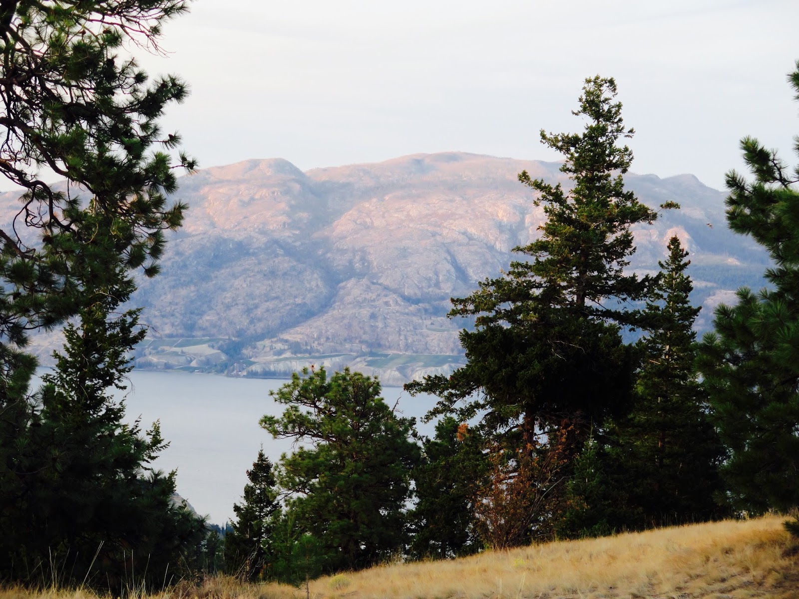 Certainly glad that I did as it is a spectacularly beautiful ride, with many switchbacks. Okanagan Lake was mirror smooth when we started out but by the time we were descending into the tiny community of Indian Rock itself, the surface was dappled, looking like burnished, hammered pewter. The vistas were spectacular, akin to so many of the views we've enjoyed on our various hikes.